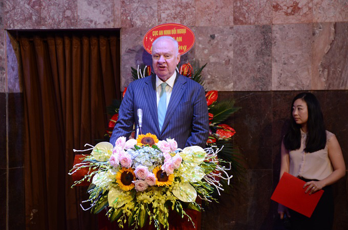 Russian Ambassador to Vietnam Konstantin Vnukov speaks at the event.