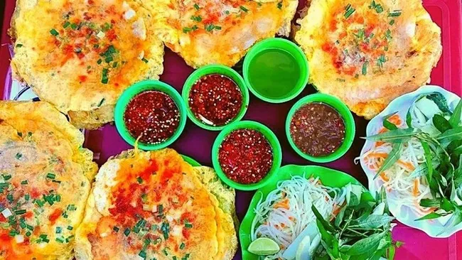 Stalls usually sell the dish until about 10 p.m. Visitors can enjoy this dish at many places including: 20 Nguyen Du, 1 Van Cao, 101 Ba Trieu, 116 Le Ngo Cat and 73 Tung Thien Vuong. Prices start at 2,000 VND to 3,000 VND for a regular-sized crepe and 5,000 VND for a larger one.