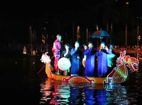 Instead of performing in the yard of a communal house, which is the typical venue, the singers perform on boats on the Nguyen Phi Y Lan Lake in Bac Ninh city.