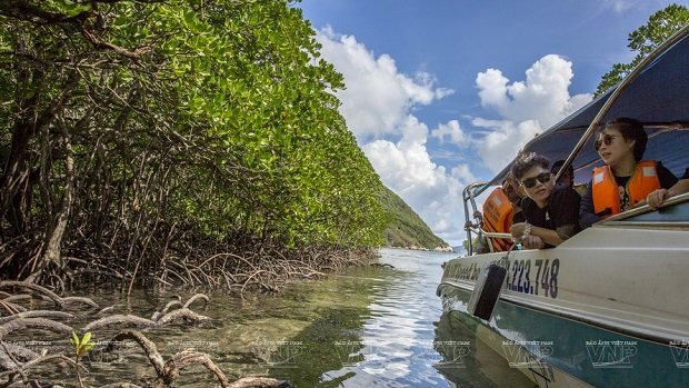 Tourists explore the mangrove system in Con Dao. (Photo: Vietnam Pictorial)