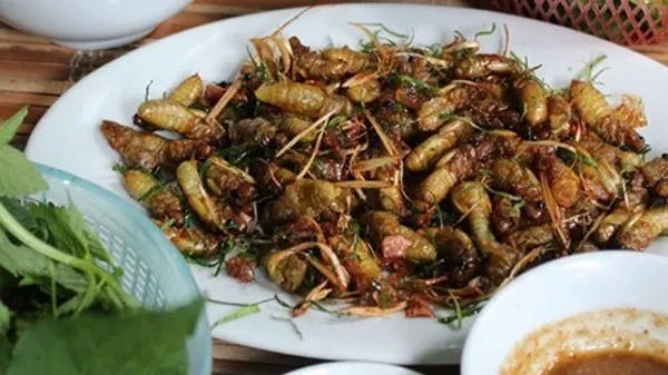 This helps to eliminate any bad odors from the cicadas to ensure it’s the right time to fry them with fat, fish sauce and chili until they turn to a red brown colour in order to keep young milk in the cicada’s belly, and help the food become greasier without being too dried.