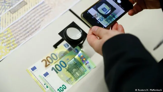 Just like the other denominations, the new notes are easy to check when using the "feel, look and tilt" method. The new 100 and 200 Euro notes are a different size to the old 100 and 200 Euro notes.