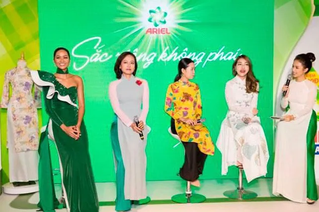 Miss Universe Vietnam H'Hen Nie participated in the event and wore an ao dai designed with the patterns of the E De ethnic group. At the exhibition, many ao dai were featured alongside interesting stories, including ones owned by director and actress Hong Anh, writer Phan Y Yen, and blogger Le Ngoc.