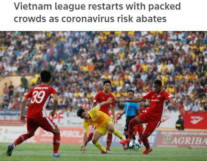 Reuters ran a positive article showing the packed stands in the V.League, making a comparison between it and other leagues around the world, such as the Premier League, La Liga, Serie A and Bundesliga, which it said still cannot return until later this month or have already restarted but with “a haunting atmosphere at empty stadiums and muted goal-scoring celebrations.”