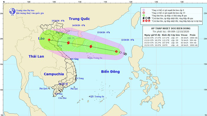 It is forecasted that in the next 24 hours, the tropical depression would move in the northwest direction at a speed of 20kph and is likely to strengthen into a new storm. By 7 am on October 13, the location of the storm was about 200km north of Hoang Sa Archipelago, packing winds from 60-90kph.