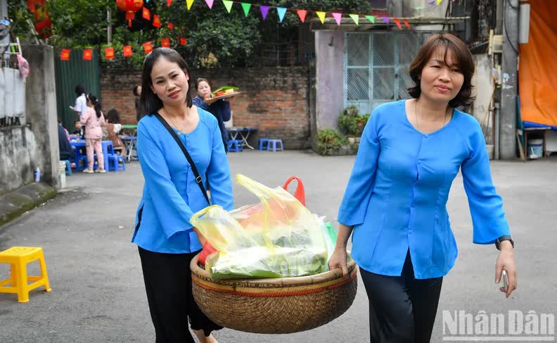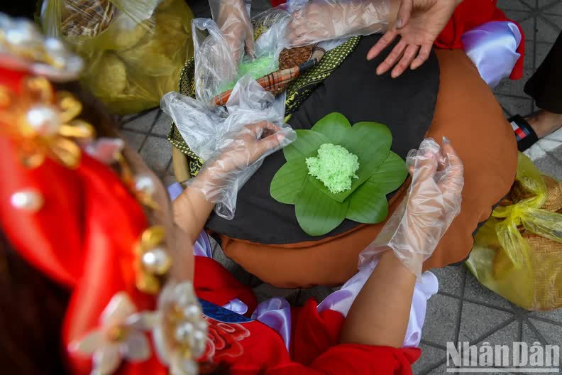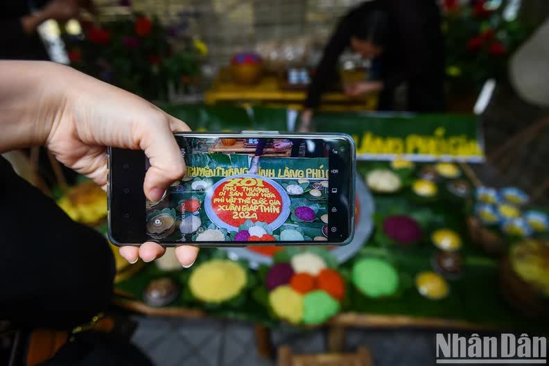 The sticky rice trays are shaped into communal roofs, dikes and vast green lawns, just like the original thousand-year-old village on the Red River. According to the elders, Phu Thuong currently has three artisans and about 600 families making sticky rice and a retail "system" with hundreds of people in the village, bringing the fragrance of Phu Thuong sticky rice to every corner of Hanoi.