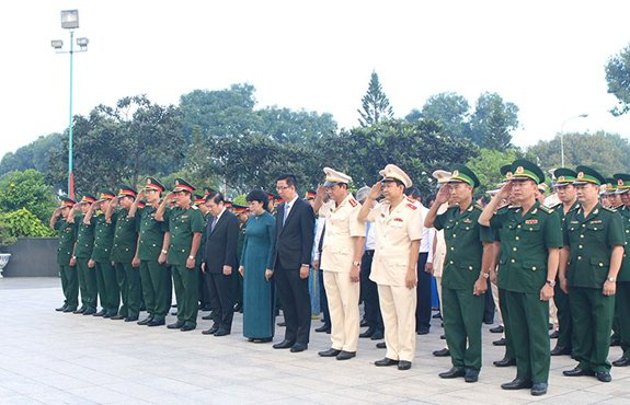 * This morning, a delegation of the Ho Chi Minh City Party Committee, People’s Council, People’s Committee and Vietnam Fatherland Front Committee, led by Chairman of the Municipal People’s Committee Nguyen Thanh Phong, laid wreaths and offered incense at the HCM City Martyrs’ Cemetery in District 9 and the HCM City Cemetery in Thu Duc District.