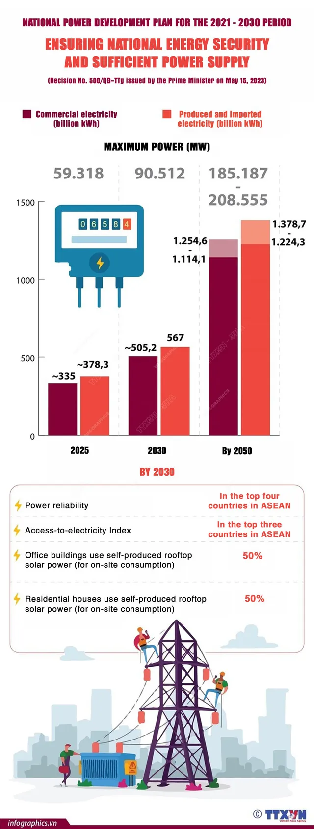 The National Power Development Plan for 2021-2030, with a vision to 2050 (Power Plan VIII for short), aims to to guarantee national energy security and facilitate socio-economic development, helping to achieve the annual GDP growth target of about 7% for 2021 - 2030 and 6.5 - 7.5% for 2031 - 2050.