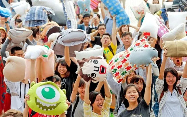 The Japanese may be known for their neatness, particularly when it comes to making their bed in the morning, but all social norms went out the window on Saturday, May 25 as people of all ages attended the All-Japan Pillow Fighting Championships in Shizuoka Prefecture.