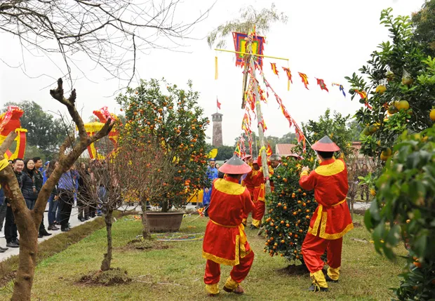 Among various activities, the planting of a nêu tree has attracted a lot of attention from participants. The tree is planted on December 23rd of the lunar calendar at the Thăng Long Imperial Citadel in Hanoi.