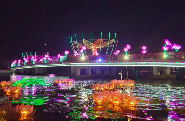 The highlight of the night was the Light Festival with the theme "Mystical night of Western region", where stories were told using light, sound, and water-screen technology. In addition, the flower garland model contest also created a romantic sight on Ninh Kieu wharf.