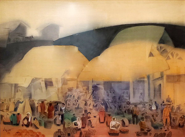 A silk painting named "Cho que" (Rural Market) by Duy Vu in the collection. (Photo: doanhnghiepvn.vn)