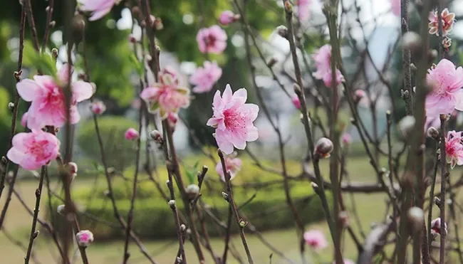 The area is divided into two sections - scenery and peach flower exhibition. In the first section that is arranged based on the theme Núi-Sông và Hoa (Mountain-River and Flower), visitors can contemplate the beauty of the peach flowers that Lạng Sơn Province has been endowed with. The second section - the peach flower exhibition - is set up on peach path decorated with 65 peach trees.