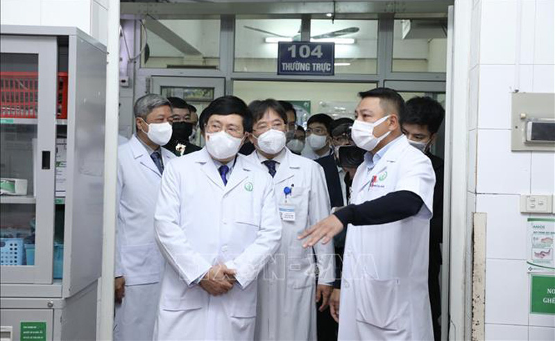 After the working session, Permanent Deputy PM Pham Binh Minh, visited and inspected the work of ensuring emergency examinations and treatment of patients, at Viet Duc Hospital's Emergency Department.