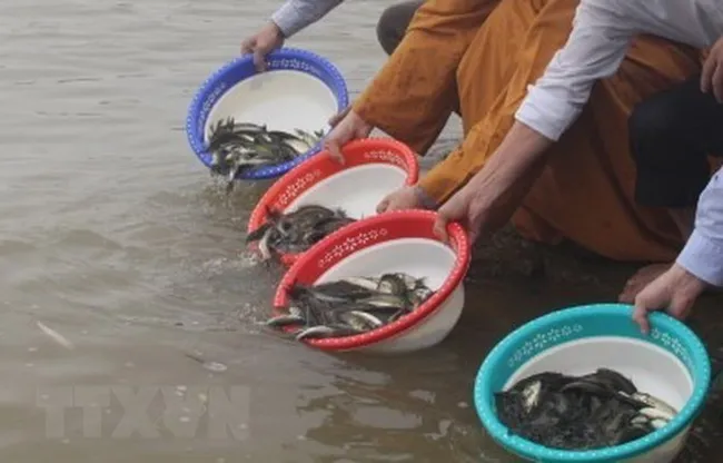 In order to quickly increase seafood reserves, the Vietnamese fishery sector and the Buddhist Sangha of Vietnam organised the restocking of aquatic breeds in a number of areas. One of the most prominent activities in these efforts was the cooperation between China and Vietnam in restocking more than 41 breeds to the Bắc Luân Border Gate.