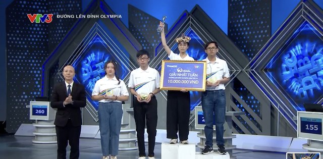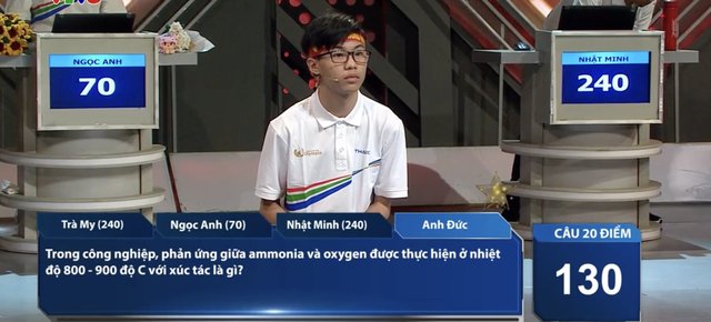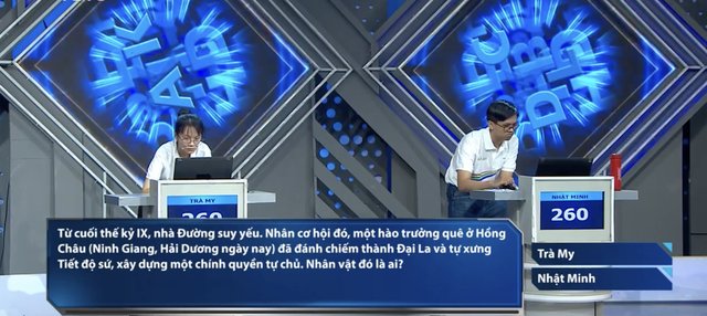 Similar to Trà My, Nhật Minh also chose the package of 3 questions worth 20 points each. After answering all three questions excellently, Nhật Minh temporarily took the lead with 240 points.
