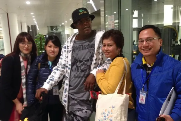 Samuel L. Jackson at Noi Bai International Airport with fans (zing.vn)