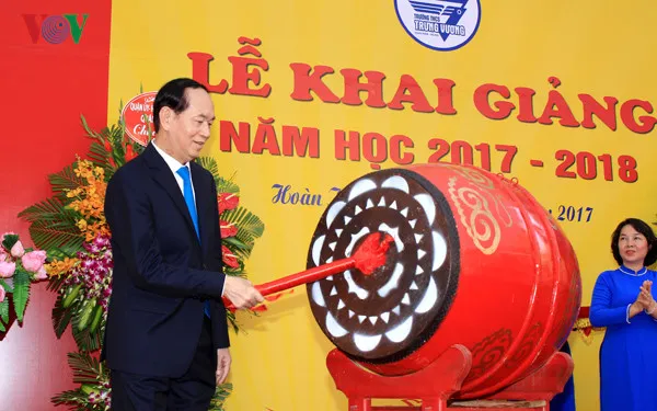 State President Tran Dai Quang attended the opening ceremony of the school year at Trung Vuong Secondary School on Tuesday. The event took place on the 100th anniversary of the founding of the school. Speaking in front of pupils, teachers and parents, President Tran Dai Quang reiterated that education remained a top national policy in the country's development.