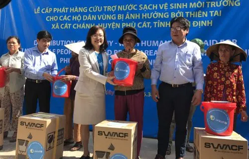 The Ministry of Agriculture and Rural Development in collaboration with the UNICEF provided emergency supplies yesterday April 3, consisting of clean water and to help local people in Binh Dinh Province overcome the consequences of Typhoon Damrey, which affected Vietnam during November 2017.