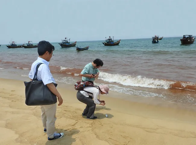 "We’ve come here to investigate and have found that the sea is red. We also saw a stretch of yellow offshore." - PhD. Yasumo Fukuyo, Tokyo University, Japan.