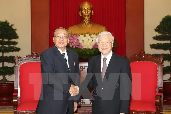 VTV.vn - Communist Party of Vietnam General Secretary Nguyen Phu Trong received a Cambodian People's Party Central Inspection Commission delegation led by Nay Pena, head of the commission and first vice president of the Cambodian senate.