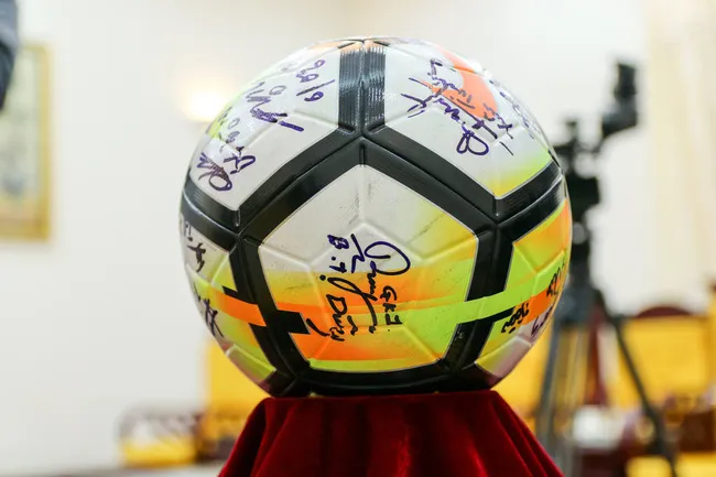 Prime Minister Nguyễn Xuân Phúc gave the Ministry of Labour, Invalids and Social Affairs and the Ministry of Information and Communications a ball and shirt signed by members of the U23 Vietnam team and the Prime Minister on Thursday.