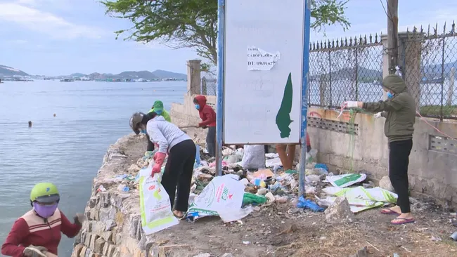 VTV.vn - In Khánh Hòa Province, local women started a big campaign by cleaning the coastal areas every morning.