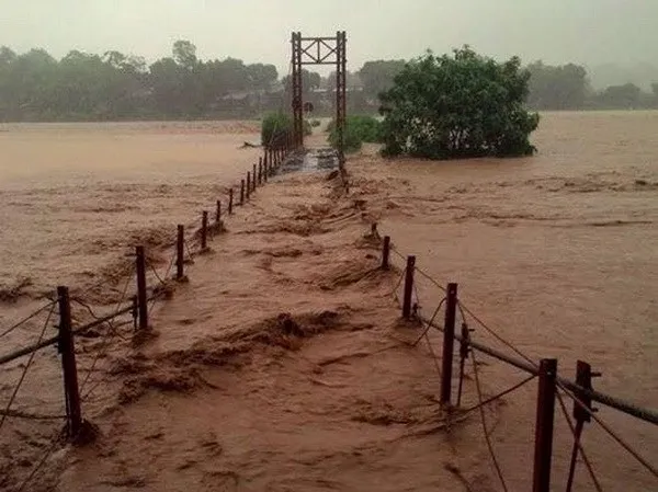 A suspension bridge is drowned under the water in Dong Tuyen Commune. Photo otofun.vn |