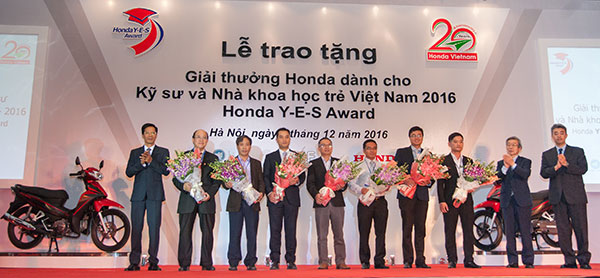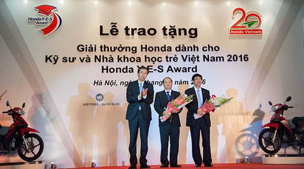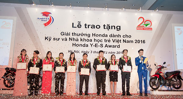 The Honda Y-E-S Award aims to find and facilitate fostering young talents in Eco-technology field and prospective leaders in technology and engineering. It is implemented under the cooperation of Honda Foundation (Japan), The National Institute for Science and Technology Policy and Strategy Studies (NISTPASS) – Ministry of Science and Technology, Honda Vietnam Company and 10 affiliated universities. Annually, the award finds out and awards 10 scholarships with the total value of $30,000 and 10 motorcycles manufactured by Honda Vietnam for the 10 best students. After that, those students will have chance to receive a $10,000 Y-E-S Plus Award if attending a postgraduate course in Japan; or $7,000 Y-E-S Plus Award if being accepted and joining in an internship programme of 2.5 months to one year of Japanese universities, institutes or laboratories within three years since receiving the award.