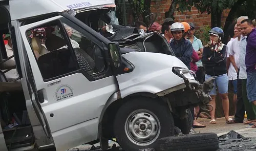 A 16-seater coach, operated by Dong Tien Transport Cooperative, was traveling from the central city of Da Nang to Kon Tum when it rammed another managed by the Tay Nguyen Cooperative running in the opposite direction.