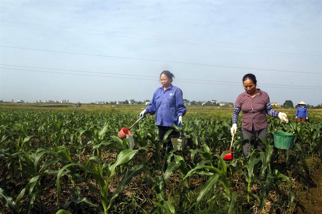 Wokers of the Nhân Lý Co-operative in the northern province of Vĩnh Phúc water corn plants. — VNA/VNS Photo Quang Quyết