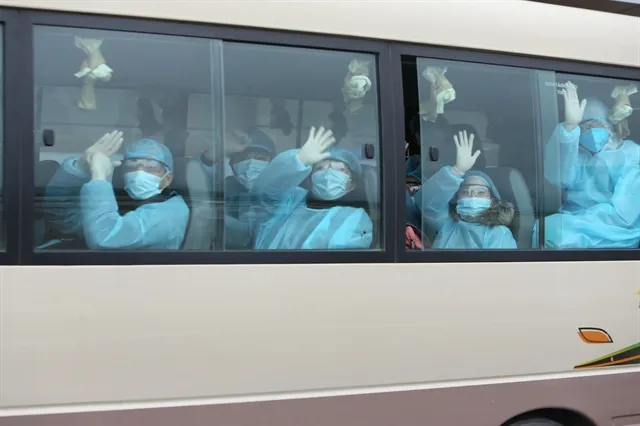 The first image of 30 Vietnamese citizens returning from Wuhan - the epicentre of the coronavirus (nCoV) outbreak at Vân Đồn International Airport in Quảng Ninh Province. — VNA/VNS Photos Dương Giang