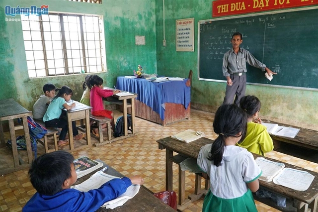 55-year-old Phạm Văn Triệu has been the only teacher working at Bùi Hui school branch for the last 11 years. — Photo baoquangngai.vn