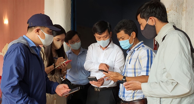 People fill in online health declarations in Huế. Photo courtesy of Thừa Thiên-Huế Newspaper