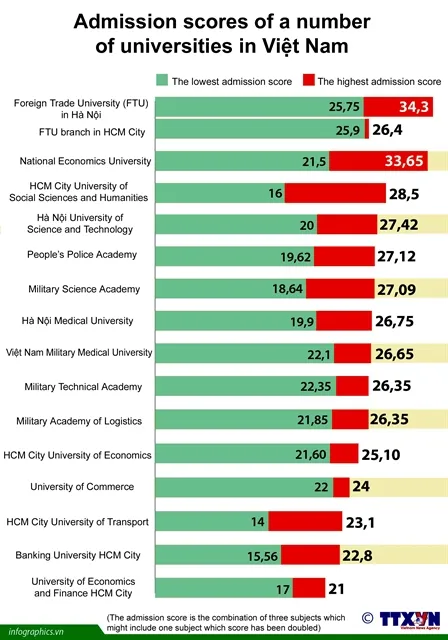 Experts said the admission score of most of the universities this year was between 1-2 points higher than that of the previous year due to the fact that exams were easier so students get higher scores. — VNS