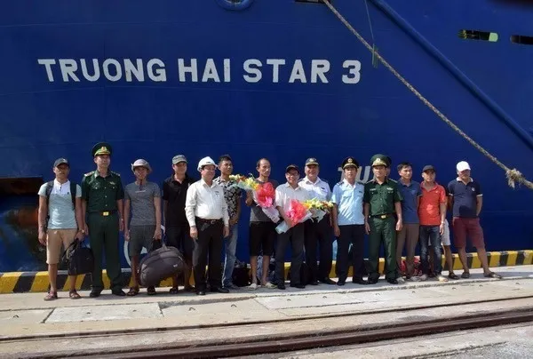 | Crew members of the An Phú 868 Vessel are rescued and taken to Chu Lai Port. – VNA/VNS Photo |