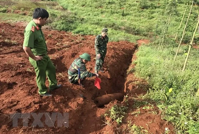 The bomb was discovered on July 11 by Mông Văn Hưng, a resident in Đắk R’la while he was doing farm work.