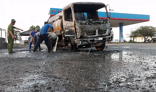 At around 5:30 pm the same day, the fire was extinguished while the tanker truck was nearly destroyed, according to Lieutenant Colonel Tran Van Hai, an official from the police station in Tinh Bien District.