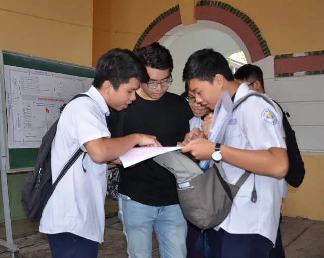 Candidates review their scores after the English test during the National High School Examination. Photo for illustration only. — VNA/VNS Photo Thu Hoài
