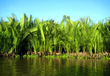 Nipa, or mangrove palm, grows densely in coastal estuaries and canals in the Cửu Long (Mekong) Delta region, or in semi-mangrove areas.