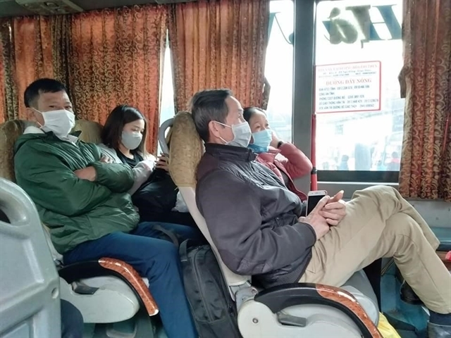 All passengers wear face masks while on a coach at the Giáp Bát Coach Station. — VNA/VNS Photo Tuyết Mai