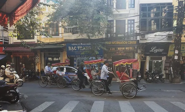 Cyclos seen in the Old Quarters. The three-wheeled vehicles are still a popular mode of transport for tourists. VNS Photo Ngọc Trâm