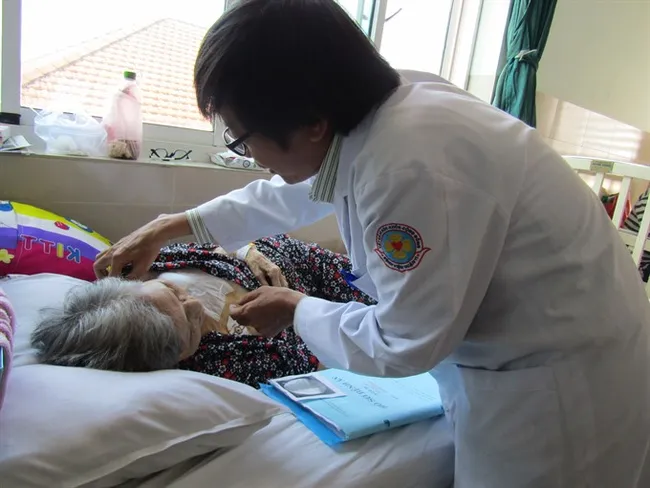 | Doctors at HCM City’s District 11 Hospital examine a patient who received a pacemaker to correct her abnormally slow heart rate. Photo courtesy of the hospital |
