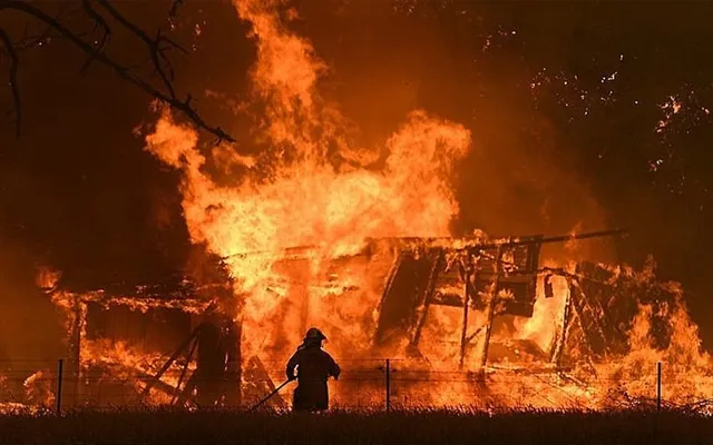 A firefighter trying to extinguish the fire at a greenhouse southeast of Moscow on January 7, that killed eight Vietnamese workers. —FreeMalaysia Today/VNA Photo