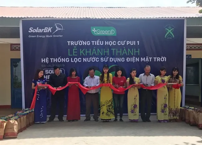 | The innauguration of a purified drink water system using solar power at the primary school of Cư Pui 1 in the central highlands Đắk Lắk Province’s Krông Bông District. The system now supplies clean water for nearly 500 ethnic students. |