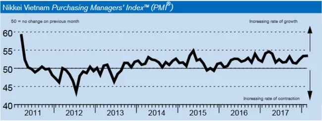 HÀ NỘI – Local business conditions have strengthened continuously since December 2015, pushing the Việt Nam Purchasing Managers’ Index (PMI) to a 10-month high of 53.5.