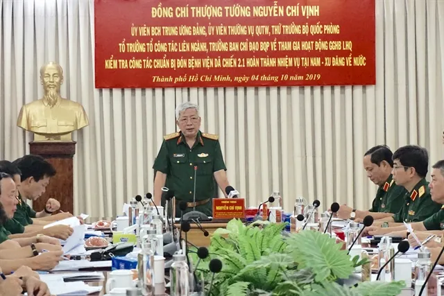 Deputy Minister of Defence Senior Lt Gen Nguyễn Chí Vịnh speaks at a meeting in HCM City yesterday to review preparations for a ceremony to welcome the return of members of the first level-2 field hospital sent to South Sudan as part of a UN peacekeeping mission. — VNS Photo Thu Hằng