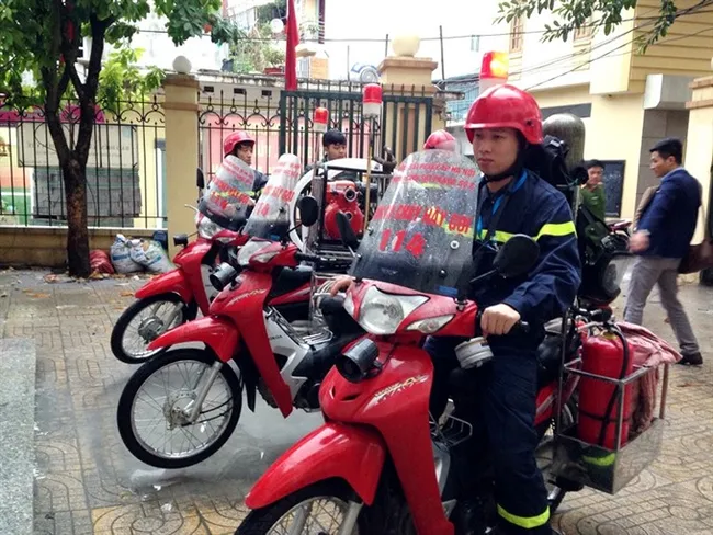 The difficult urban structure prompted the firefighters to find a new way to deal with the issue. The idea of fire motorbikes was brought out and piloted late last year at three firefighter divisions covering the districts of Hai Bà Trưng, Hoàn Kiếm, Đống Đa and Hoàng Mai.