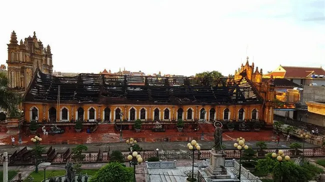 The fire in the Trung Lao Church, Trung Đông Commune, Trực Ninh District, was first spotted at around 11.30pm. Around 100 local firefighters and five fire-fighting engines were mobilised to extinguish the fire.