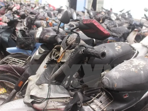 | About 200 motorbikes of students in Nha Trang Dorm in Nha Trang City were destroyed by fire early Tuesday morning. — VNA/VNS Photo Phan Sáu |